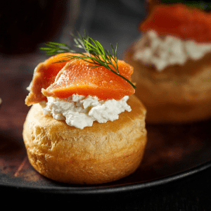 Only 5 ingredients are needed for this recipe, a Yorkshire pudding (why not try one of our GF Yorkshires?), smoked salmon, cream cheese and 1 lemon (zest and juice). This simple but extremely delicious canape will impress everyone at the dinner table, leaving them wanting more 😎