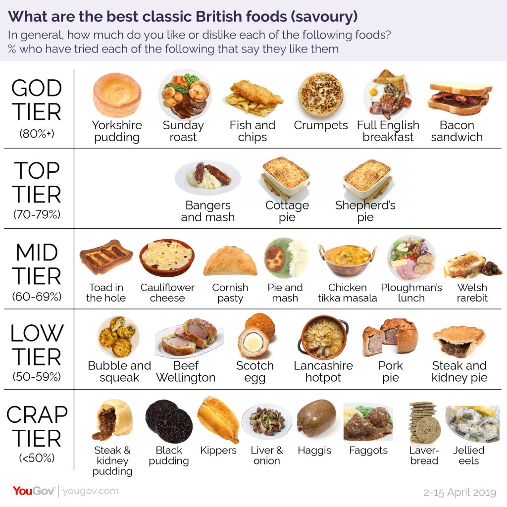Up there with the standalone puds is a right corker of a meal; the Sunday roast. YouGov found that a whopping 84% of Brits loved to tuck into a big ol’ roast, which isn’t surprising in the slightest; meat, gravy, vegetables and a ton of Yorkshire Puddings – what’s not to love?!