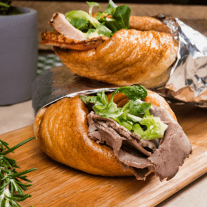 This is a great family dish, as you can grab your Yorkshires and fill with anything of your choice. E.g. ham and cheese, BLT or even a left over roast dinner 🥪