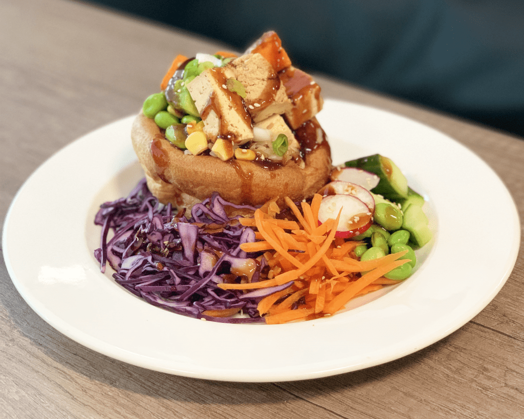 Let’s get to lunch – you’ve had a busy morning at work (I can relate) and you need a boost of energy in the most mouth-watering way. Don’t worry – we’ve got the perfect thing! Lisa also cooked up a ‘Smoked Tofu Poke Pudding’, something she created herself (she’s awfully creative!). It’s even dressed with a light and punchy soy sauce dressing and hits everything you want in a lunchtime meal – tasty, healthy and fresher than anything!