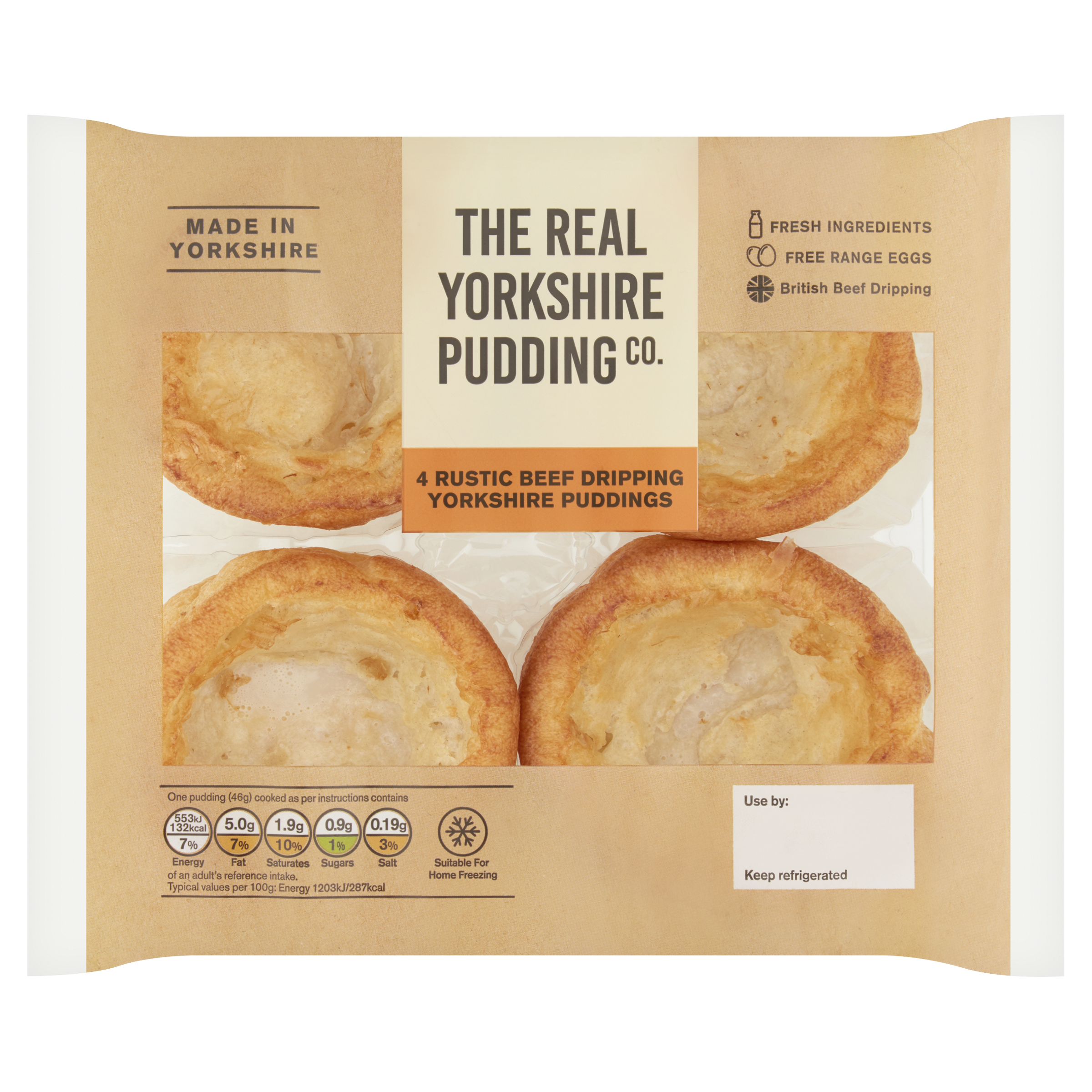 They are not your usual Yorkshires. These bad boys are cooked in British beef dripping to make them perfectly crispy and golden. As always, they are made with free range eggs and fresh ingredients.